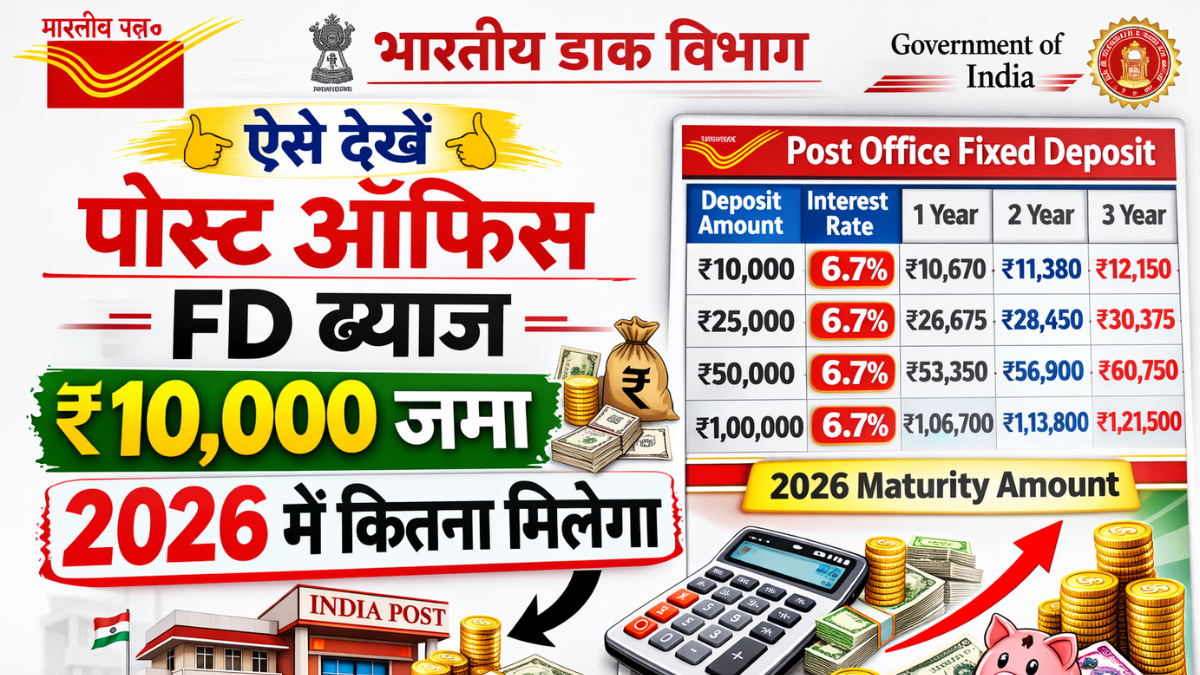 पोस्ट ऑफिस एफडी 2026: ₹10,000 जमा करने पर एक साल बाद कितना मिलेगा रिटर्न